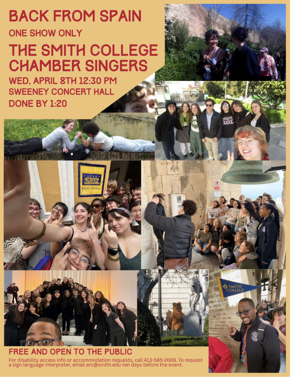 The Smith College Department of Music presents the Chamber Singers, conducted by Jonathan Hirsh and Hanif Lawence. This select group of 24 singers will present repertoire from their concert tour to Spain.
