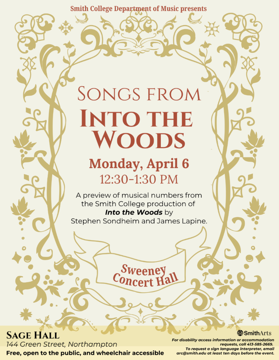A preview of some of the musical numbers from the Smith College production of Into the Woods performed by understudies for the lead roles.