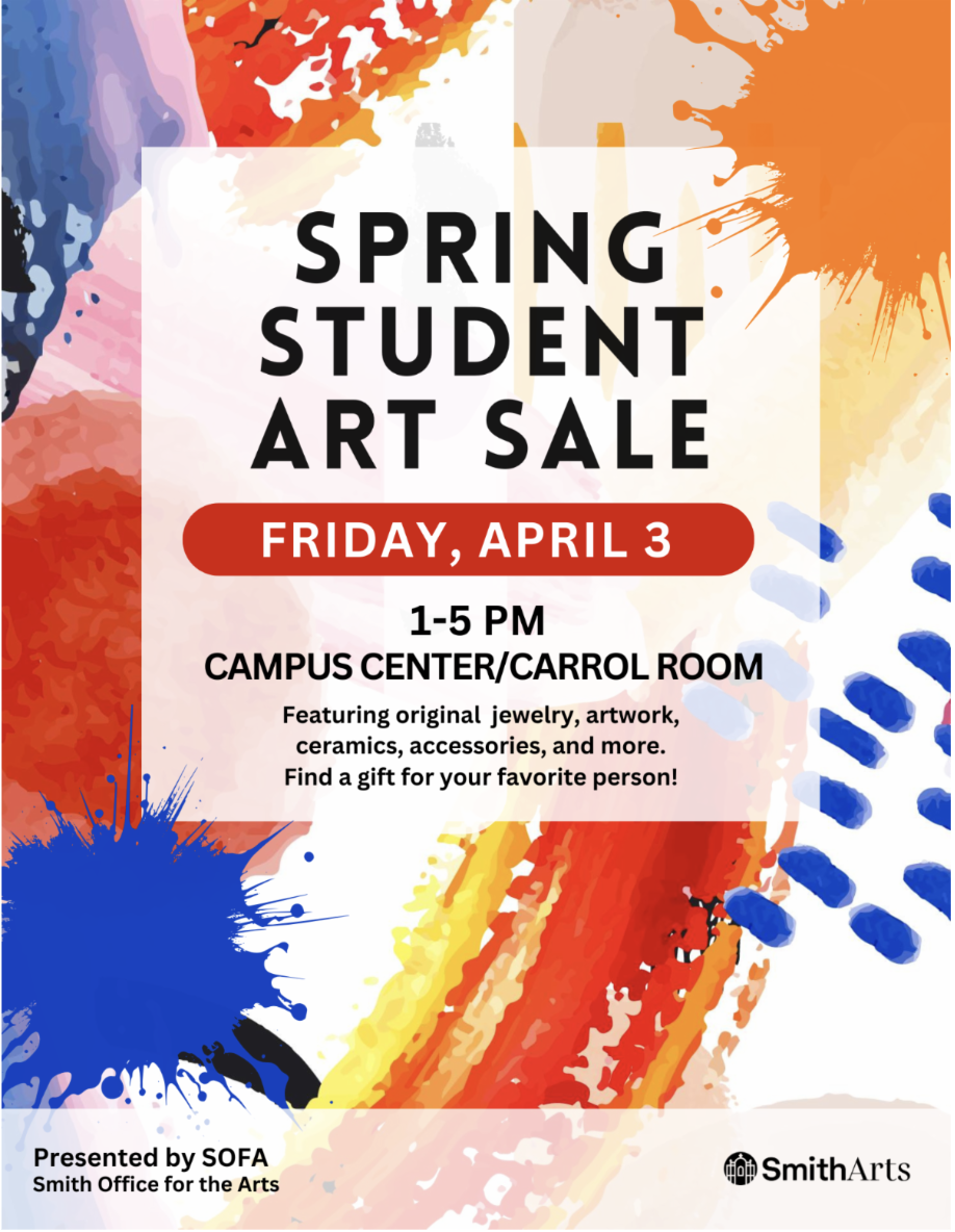 The annual spring Smith Student Art Sale featured items made by Smith students, including jewelry, artwork, ceramics, clothing, accessories and more! Support student makers and creators and get gifts for friends and family at the same time. Presented by the Smith Office for the Arts (SOFA).